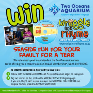 GROWING TOGETHER is a musical adventure all about an adventure to the seaside, packed with original songs and a sweet story about friendship. You can listen to a clip here … http://wriggleandrhyme.co.za/our-music